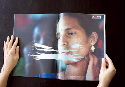 Per elevare il grado di attenzione nei confronti di questo gravissimo problema, la JWT di Dubai ha ideato un annuncio che attira il lettore in un "gioco" in cui, cercando di separare due pagine appositamente incollate, finisce per strappare il volto di una donna, creando un effetto cicatrici.