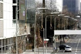 Sulle torri della Deutsche Bank di Francoforte, a un'altezza di 140 metri, hanno fissato uno striscione di 12x13 metri riportante il messaggio: "Wäre die Welt eine Bank, hättet ihr sie längst gerettet!" ossia " Se il mondo fosse stato una banca, si sarebbe già salvato!"